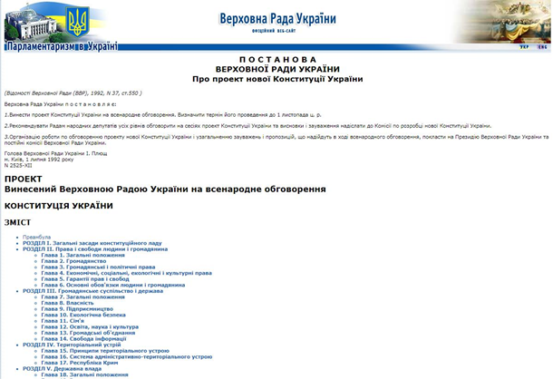 Тот самый проект Конституции, вынесенный Постановлением Верховной Рады на