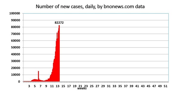 За сутки инфицировано более 80 тысяч (первые 80 тысяч были инфицированы за 2 месяца). Средняя предварительная летальность выросла к 5,2%. В Италии -12%, во Франции, Испании, Нидерландах - выше 9%. Во всех странах Европы, кроме Исландии и Хорватии, летальность превысила 1,0%. В мире летальность менее 1% сохраняется в Израиле, Австралии, Чили.