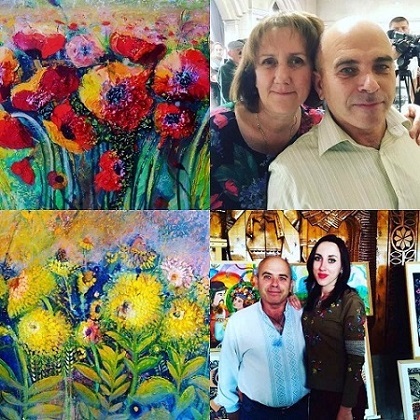уважно спостерігали його дружина та донька. Леся і Ольга Теуту також художниці.