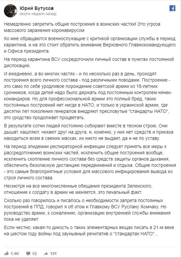 написал Бутусов 30 марта с ссылкой на неназванных военных.