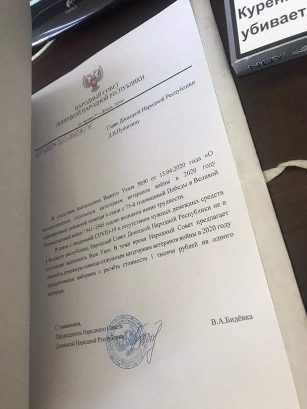 телеграмканале было найдено фото документа, в котором народный совет ДНР