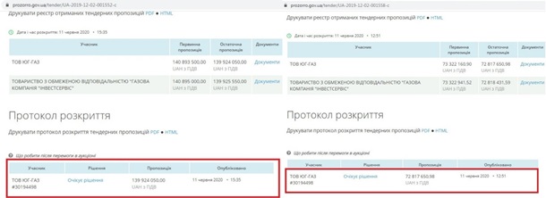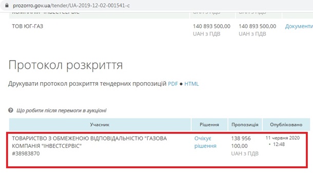 отримала одеська ТОВ «ЮГ-Газ». Ще в одному тендері перемогла полтавська