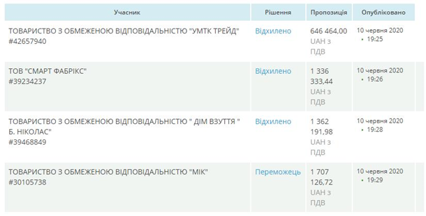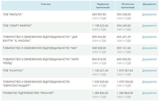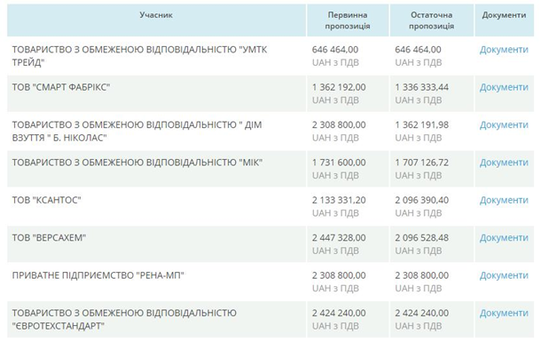 закупки конкурувало декілька компаній проте, на всіх тендерах по закупівлі одягу перемогла