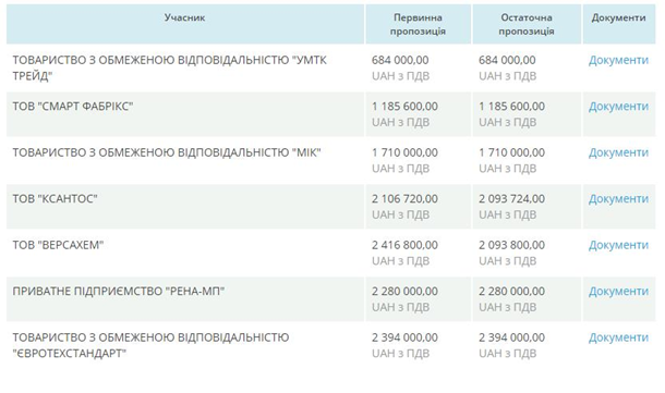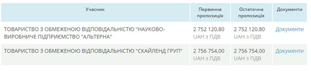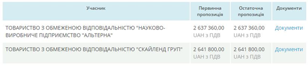 перемогу отримала ТОВ «НВП «Альтернатива», яка отримає за свої послуги 5,5 млн.