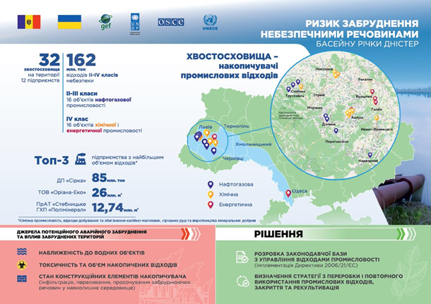 Резюме дослідження хвостосховищ у басейні річки Дністер зазначає, що станом на 2019 рік загалом  в