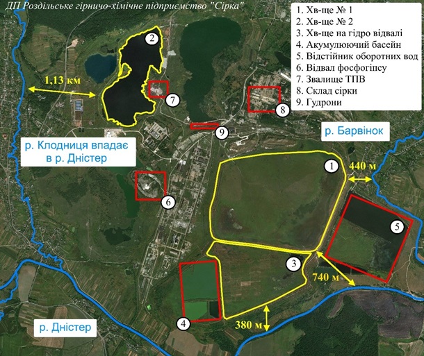хвостосховищ до річки Дністер лише 380 м (рис. 2).