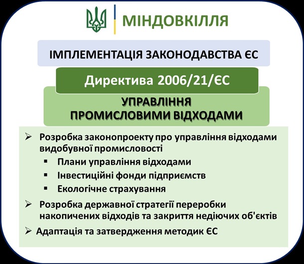 асоціацію, Україна має впроваджувати вимоги Директиви 2006/21/ЄС Європейського Парламенту
