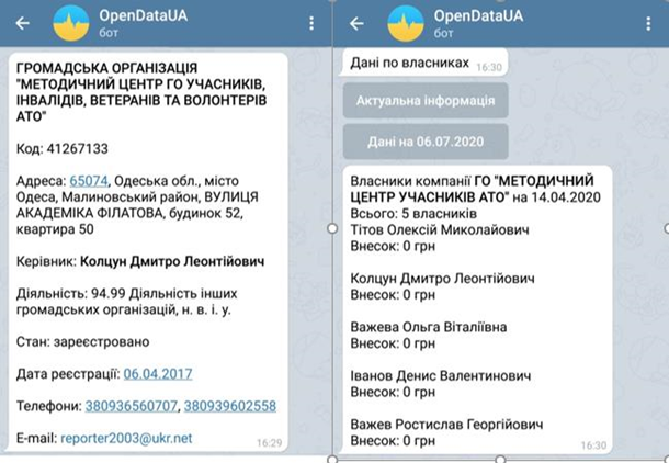 можно увидеть, что эта организация от Одесских городского и областного советов
