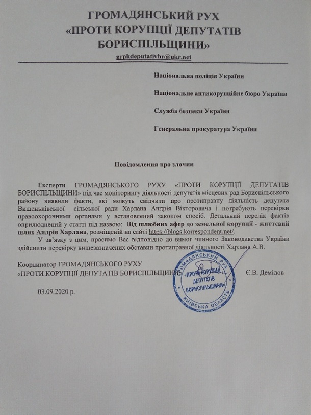 громадянського руху «Проти корупції депутатів Бориспільщини».