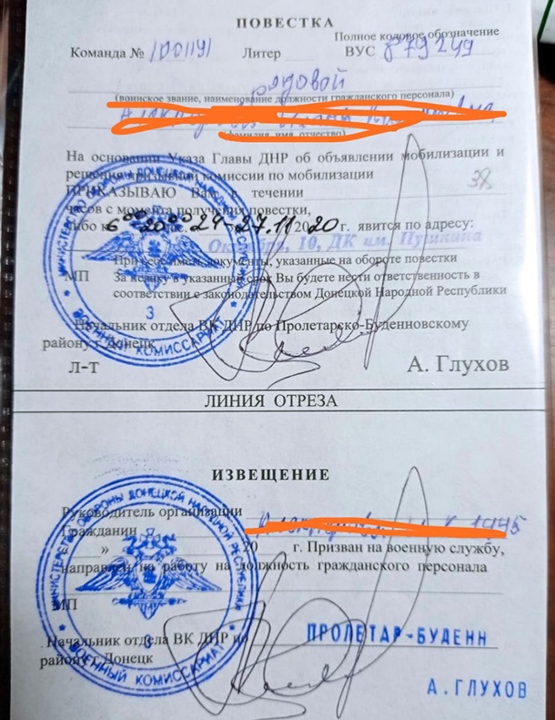 В кінці листопада російська окупаційна влада окупованого Донбасу викликає до військкоматів усіх, хто перебуває у запасі. Поки що мета невідома