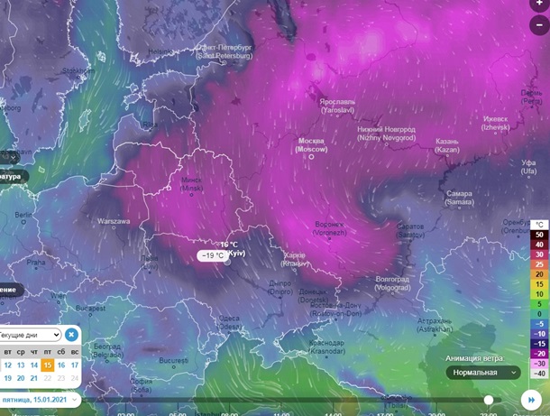 На Василия область студёного воздуха, где будут изотермы ниже -30°С, расположится обширным фронтом на линии Раквере-Псков-Калуга-Рязань-Ульяновск-Оренбург-Актобе. В течение последующих суток холодные массы смогут проникнуть на юг, обеспечив до -20°С в Житомире, Виннице, Киеве, Харькове, Луганске и безусловно минусовую температуру на всём пространстве до Чёрного моря. Хороший тест для автомобильных аккумуляторов и жидкостей-незамерзаек (кто там привык сильно разбавлять в последние еврозимы?).
