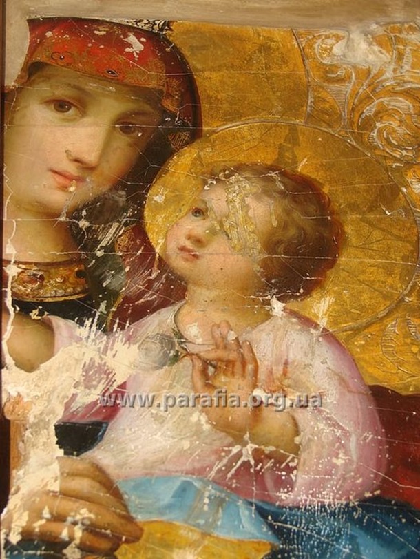 На фото - єдина збережена ікона з іконостасу Успенського собору Києво-Печерської Лаври, 1720-ті роки. Бачите, що у Богородиці в руці? Чи комусь ще схочеться перевертати наш прапор?