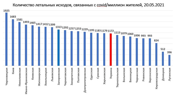 В Украине пока пройдено полпути - 1172 смерти/миллион. Но некоторые регионы выйдут из эпидемического процесса раньше. Черновицкая, Николаевская, Ивано-Франковская области и Киев