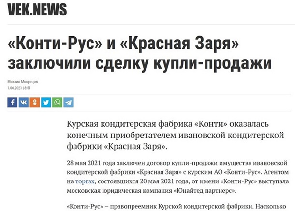приобрела кондитерскую фабрику «Красная Заря» в Иваново. Как видим, дела у Колесникова