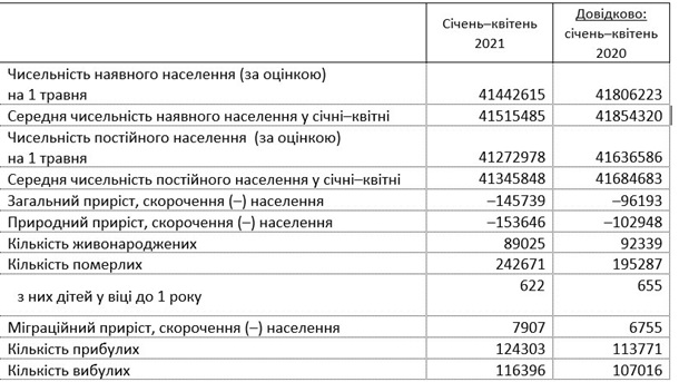 Госстат Украины разместил демографическую сводку за 4 месяца 2021 года