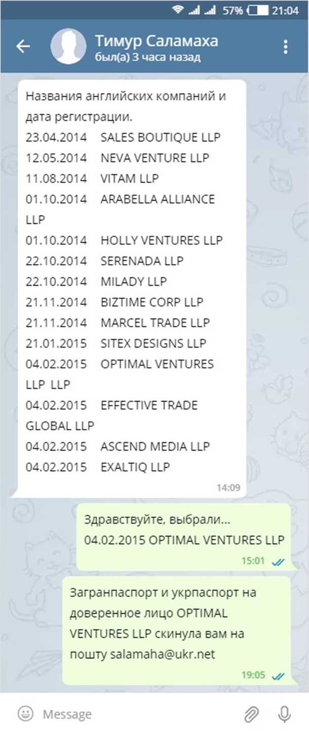 бази даних Великобританської реєстраційної палати «Companies house» () видно, що власником фірми зі списку Саламахи (OPTIMAL VENTURES LLP) є вищезгаданий Микола Арабаджи, а