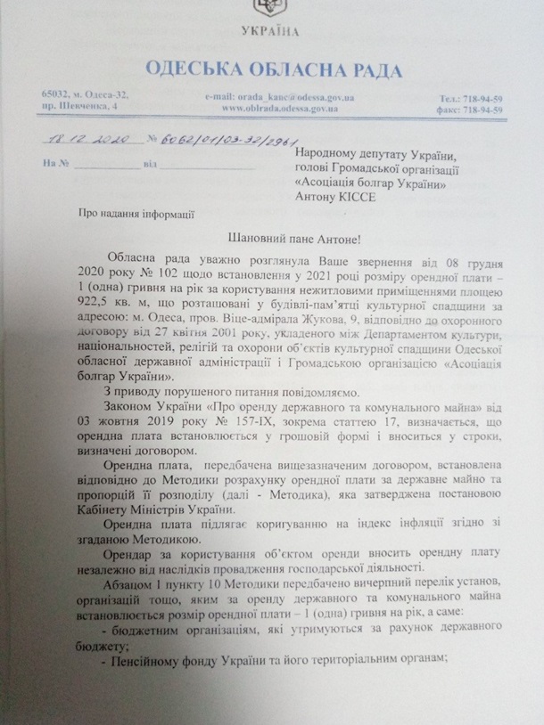 2020 році Одеська обласна рада вже надавала відповідь на такий запит у якому,