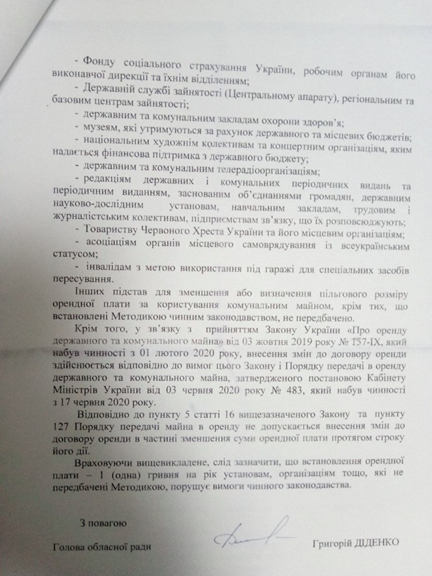 безперешкодно орендує приміщення за пільгову 1 гривню в рік, якщо це не