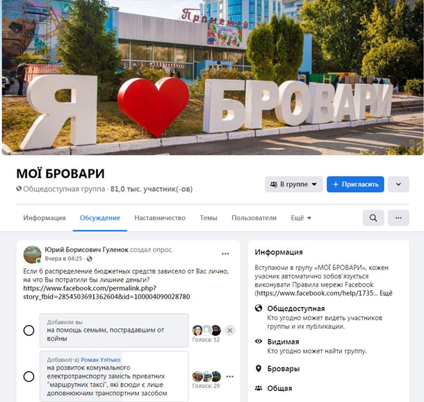 опрос появился в самой популярной ФБ-группе города Бровары (6). За сутки здесь
