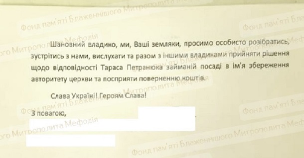 Петранюка мовою документів, які були подані на розгляд Предстоятелю Української