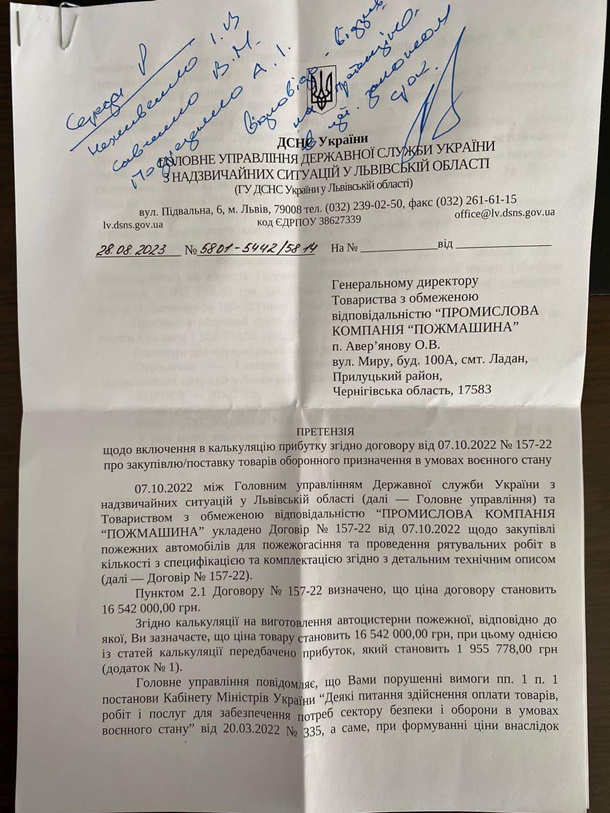 вимагає повернути 1,3 млн грн за кожну пожежну машину. За три машини потрібно