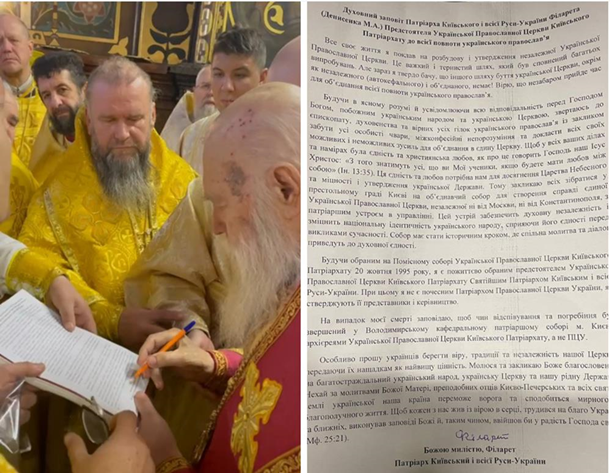 19 жовтня 2025 року Святійший Патріарх Київський і всієї Руси-України Філарет, після прийняття Святих Христових Тайн у Володимирському кафедральному соборі на Божественній літургії, з нагоди 30-ліття патріаршого служіння, благословив і підписав свій духовний заповіт до всієї повноти українського православ’я.