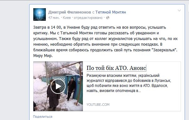 Филимонов, поехали в зону проведения АТО, для того, что бы увидеть происходящее