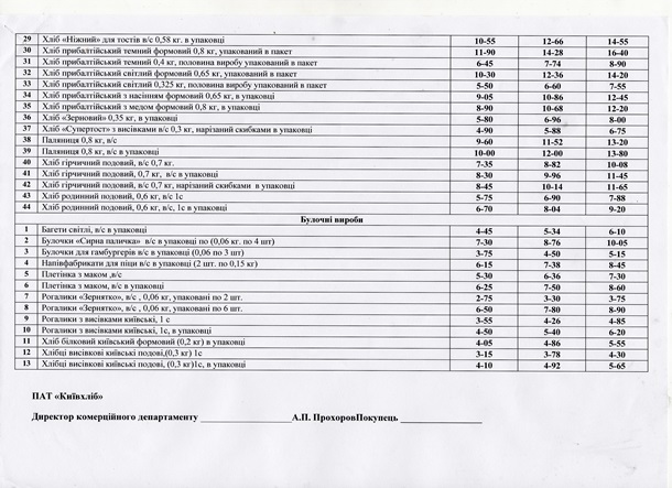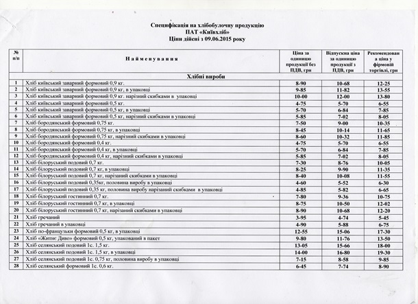 Мне удалось достать документ – спецификацию на хлебобулочную продукцию ПАТ «Киевхлеб». К сведению киевлян ожидается
