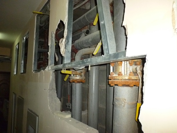 Щоб налагодити опалення, довелося ламати стіни. Про енергозбереження не потурбувалися. Фото з 14 поверху, секція "Е" будинку по вул. Ованеса Туманяна, 15-А.