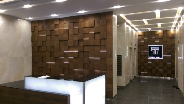 облицовки уникального фасада "Tetris Hall", который только открылся в