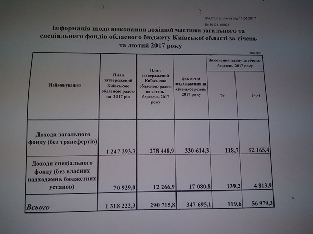 табличку, виконання дохідної частини загального та спецфондів обласного бюджету
