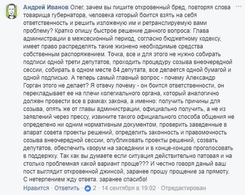 то чому він досі не подав офіційне звернення до Голови обласної ради Ганни