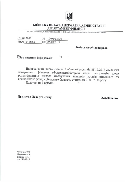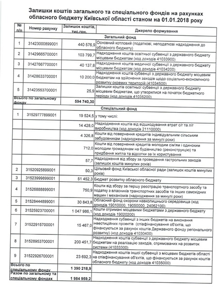 2016 року Київщина мала вільних коштів 400.000.000 гривен, після 2017 року