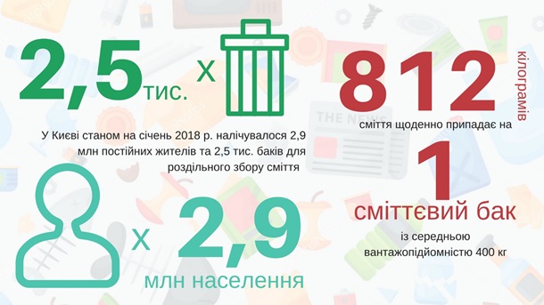 2,5 тисячі контейнерів для сортування сміття. Це при тому, що кількість постійного