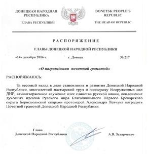 становления и развития Донецкой Народной Республики, поддержку Вооружённых сил