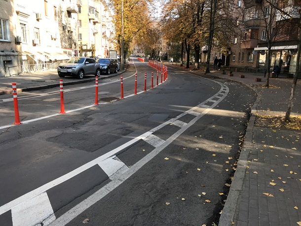Разместить на одной стороне дороги велодорожку, на другой стороне официальную парковку (там, где это технически возможно).