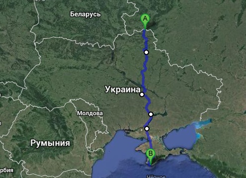 предложение Гугла. Точная дистанция – чуть более 1000 км. На нее я заложил 16