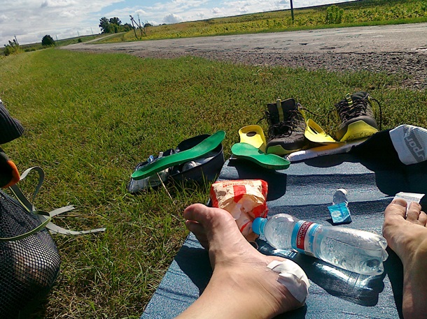 позволял просушить кроссовки. В походе я заработал множество водянок по всей