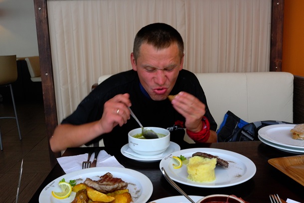 рюкзака в точке старта с 1,5 литрами Миргородской затянул 13 кг.