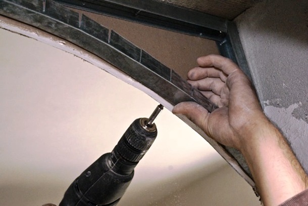 - саморезами. Для усиления углов арки, приклеиваем гибкие металлические уголки