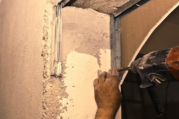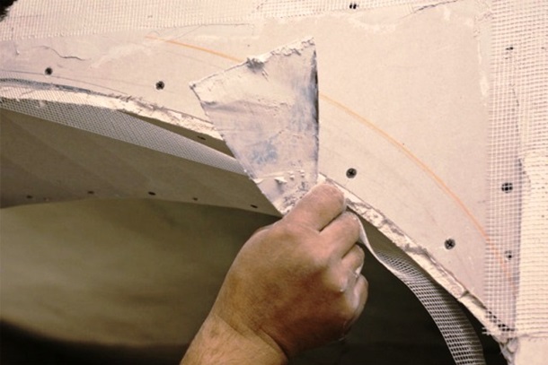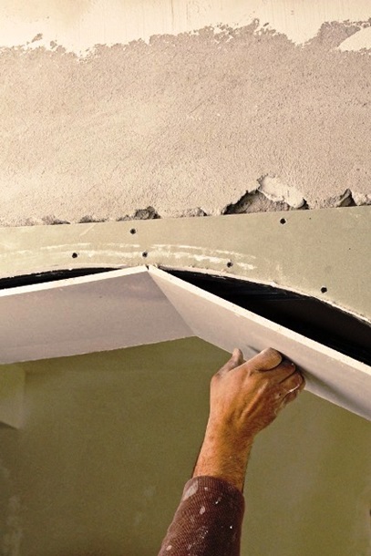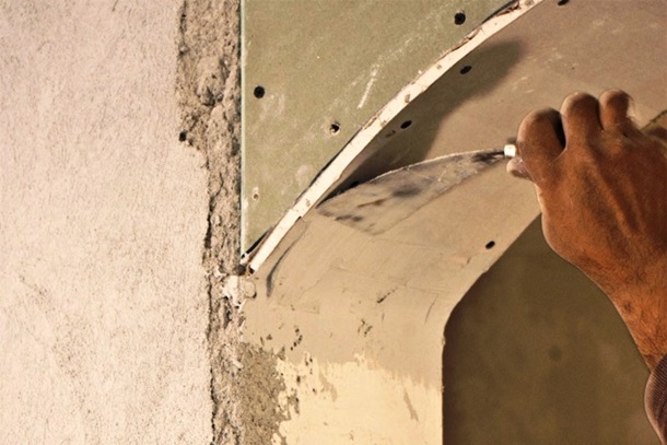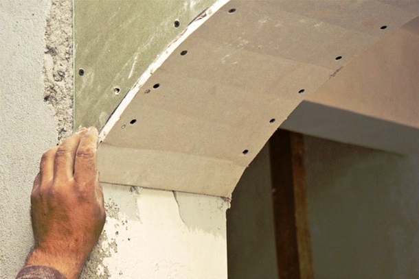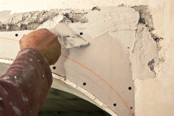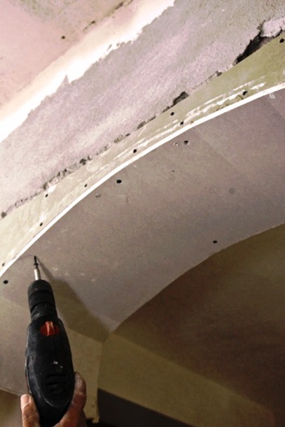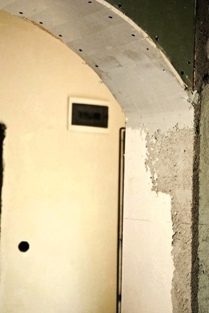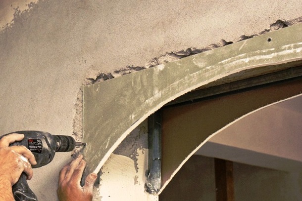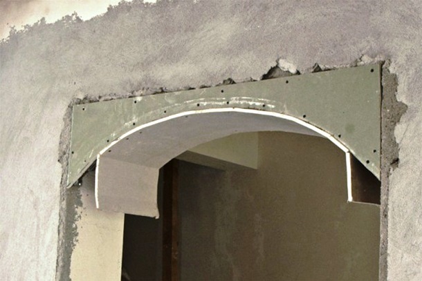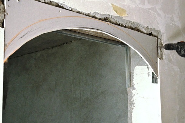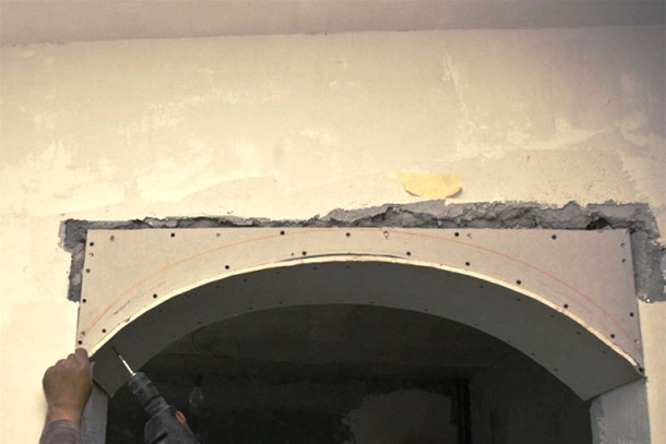 гипсокартона, по всему периметру будущей арки. Вырезам из гипсокартона форму