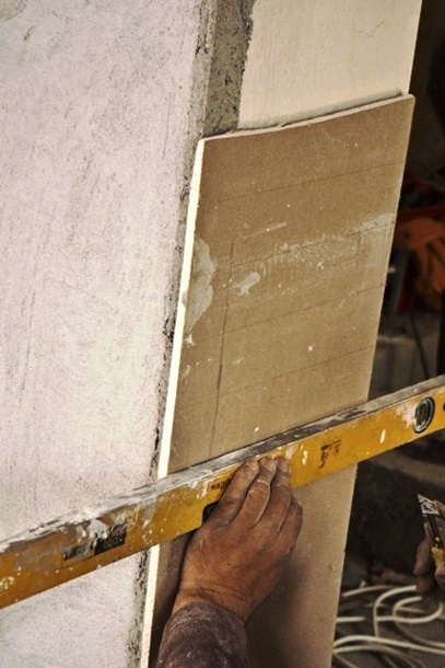 гипсокартона, соответствующей длины и ширины, прорезаем на ней поперечные