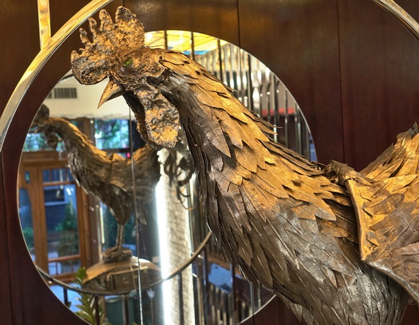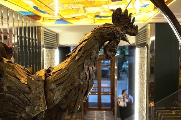 У ресторана есть свои забавные секреты. Например, на входе вас встречает символ заведения – стальной петух, который каждый час расправляет крылья и поет. На это стоит посмотреть!
