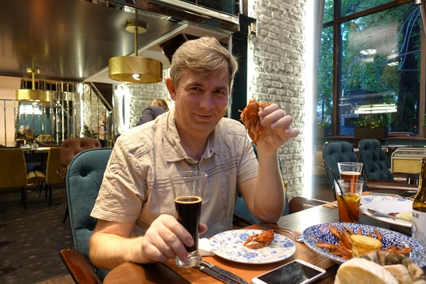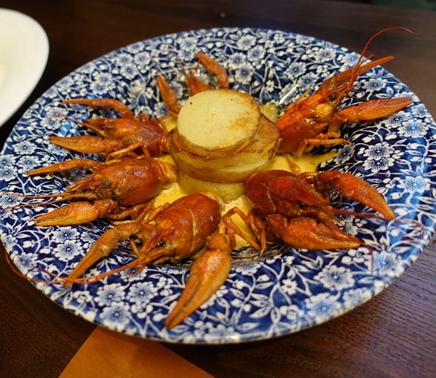 Есть у ресторана и собственный салат "Оливье" - с раковыми шейками.
