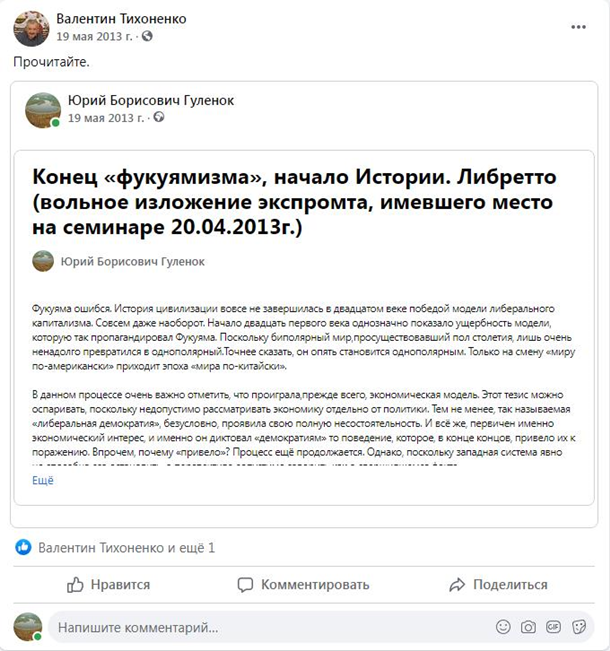 Первая публикация – в Фейсбуке 19 мая 2013 г.: