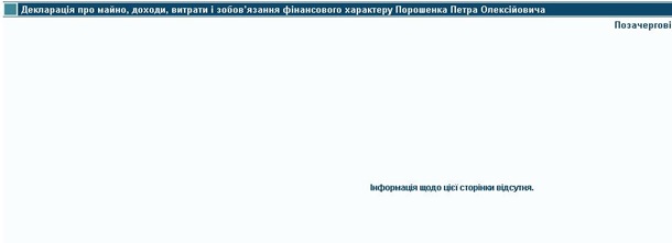Владимировны Петра Порошенко вообще нет декларации. Так и написали на сайте ЦИК: «Інформація щодо цієї сторінки відсутня.»