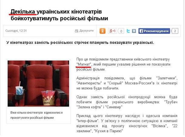 столичном кинотеатре «Магнат», представители которого решили нанести серьезный