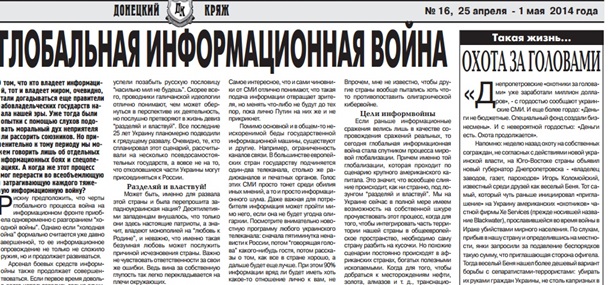 Багато йшлося у попередніх блогах про різних персонажів, які уособлюють проросійські рухи на Донбасі. Але там діє і агітаційний фон, що сприяє тероризму. Ось деякі цитати з газет Донбасу.