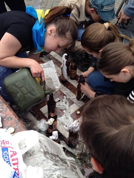 их девушками, разливают бензин по бутылкам. Потом фашиствующие молодчики