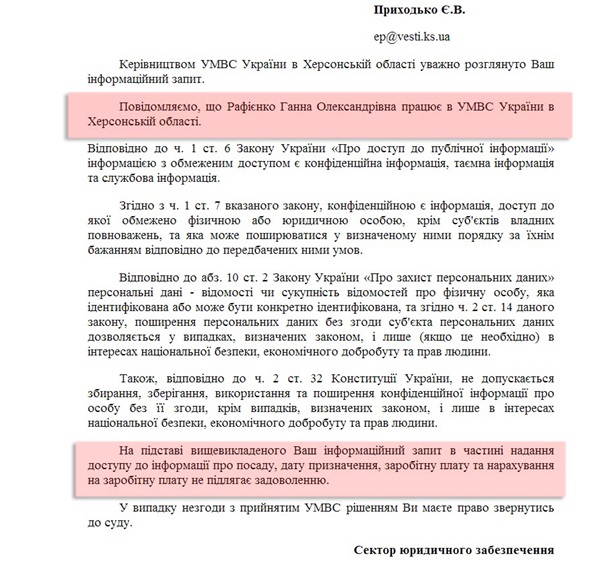 «Анна Александровна Рафиенко продолжает работать. У начальника УМВД в